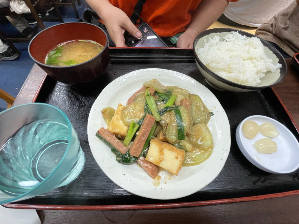 からし菜(シマナー)を塩漬けにした「チキナー」と麩のチャンプル